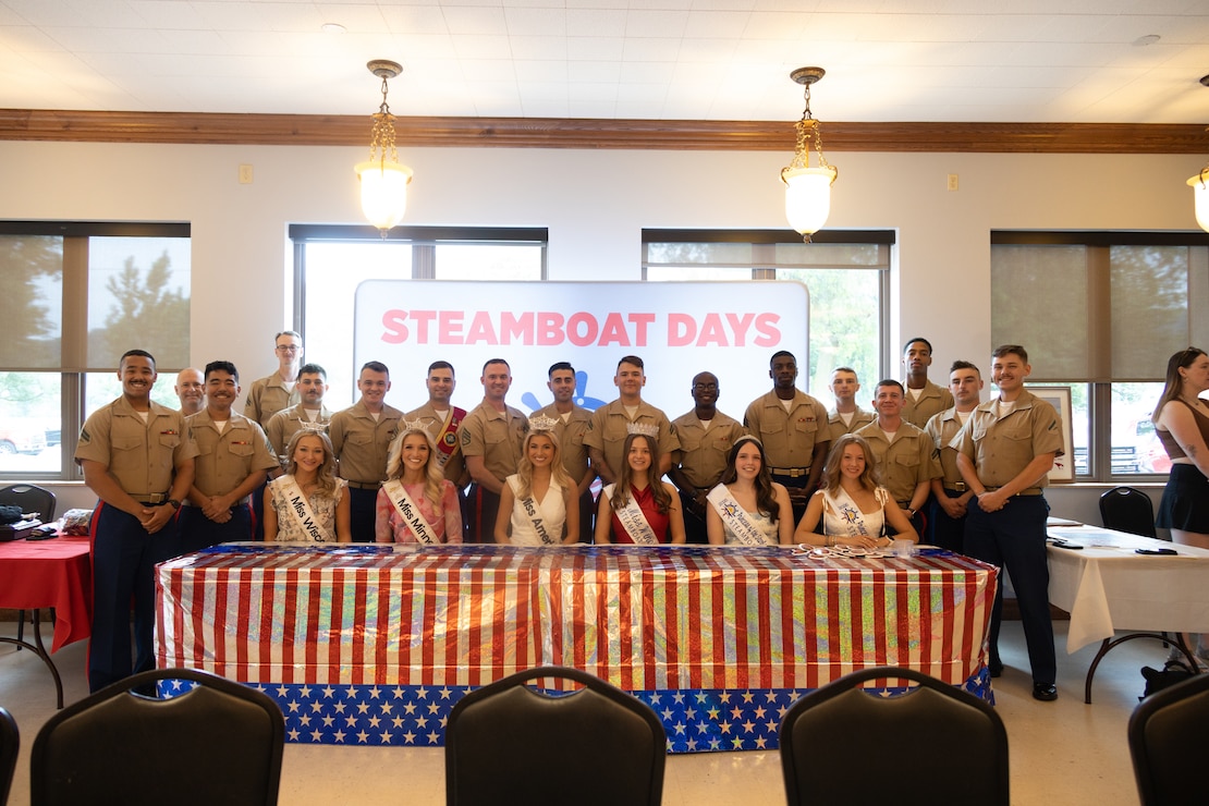 U.S. Marines with Special Purpose Marine Air-Ground Task Force 250 welcomes civilians to Marine Week Chicago 2025 in Chicago, Illinois, July 10,...