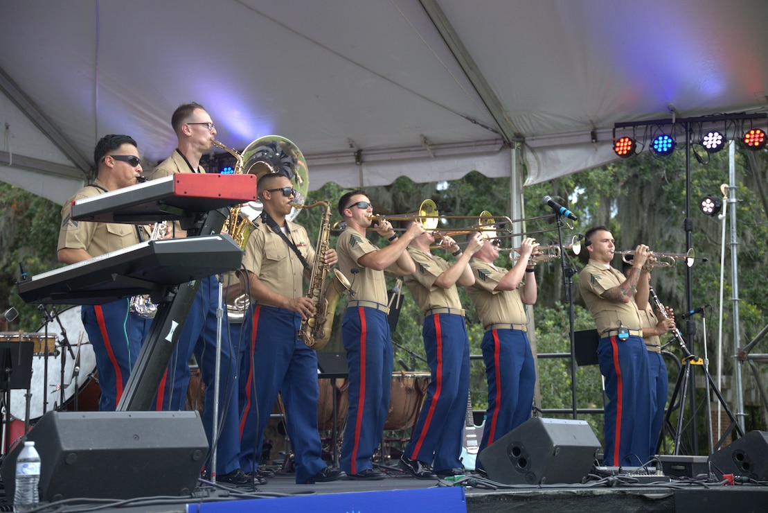 U.S. Marines with the III Marine Expeditionary Force band, perform jazz songs during the 2025 Western Army Music Festival at City Kaikan Sears Home...