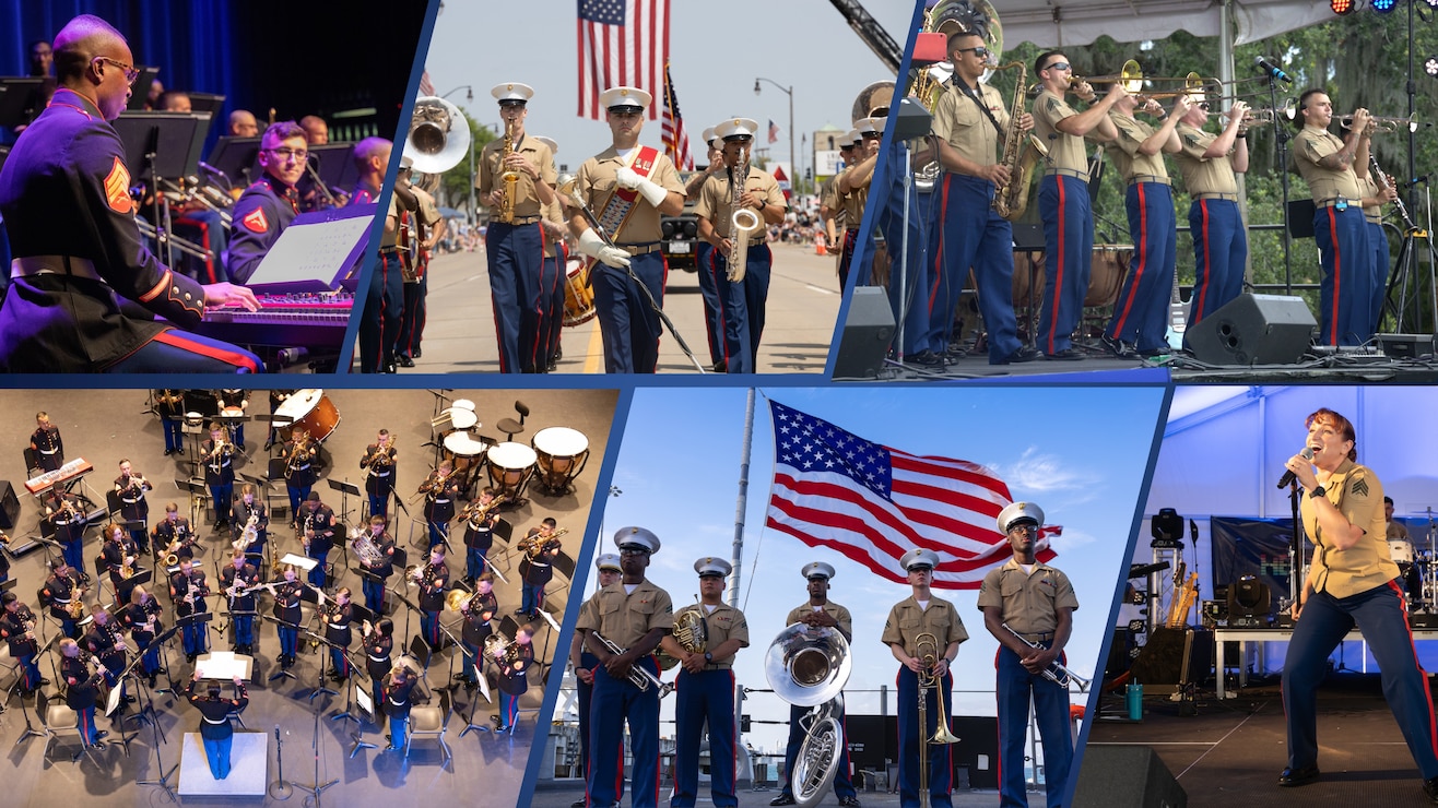 U.S. Marines with the Quantico Marine Rock Band perform at Faneuil Hall Marketplace during Marine Week Boston, Aug. 22, 2025. Marines stationed...
